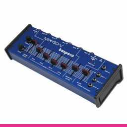Mixer compact/sumator cu 5 canale, 5 intrari mono de linie (Jack) si o intrare de microfon (Jack), EQ pe 2 benzi, 1 x intrare video RCA si 3 iesiri RCA video.