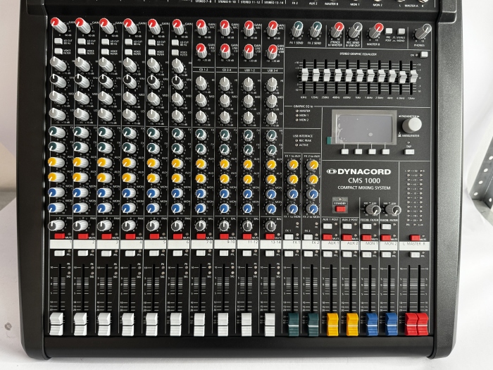 Mixerul Dynacord CMS 1000-3 face parte din noua generație CMS de mixere analogice de calitate înaltă, cu procesoare de efecte și egalizatoare performanțe integrate. Ideal pentru orice aplicație profesională live sau în studio. Controlul amplificării este asigurat de potențiometre de calitate înaltă ce asigură o gamă de 60 dB. Acesta mai dispune de filtre pentru voci, phantom power la +48V, canale auxiliare, interfața audio USB și multe altele.