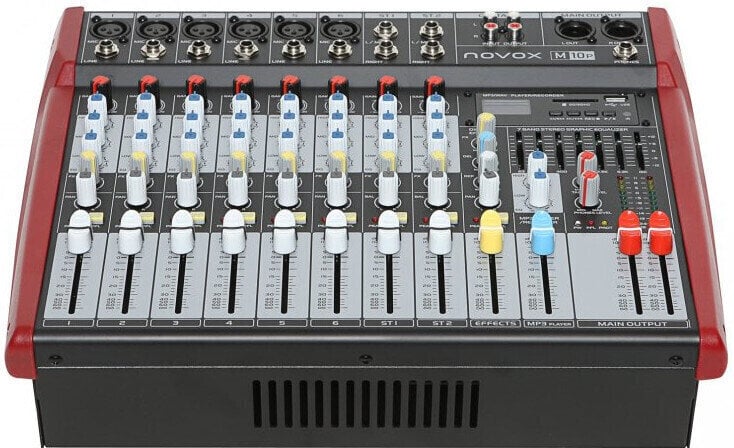 Novox M10P Powered Audio Mixer - Novox M10P are 6 canale mono în spatele XLR și două canale stereo suplimentare vă permit să amplificați cu ușurință chiar și o bandă mică. Fiecare canal este echipat cu un control al gainului și egalizare în trei puncte, permițându-vă să aveți control deplin asupra sunetului. Potențiometrele glisante permit lucrul confortabil și orientarea ușoară în setările actuale ale mixerului. Playerul MP3 / WAV și USB încorporat vă permite să redați fișiere audio în cele mai populare formate. Secțiunea de player are, de asemenea, propria sa egalizare și control al nivelului, precum și posibilitatea de a înregistra. Novox M10P are, de asemenea, efecte digitale încorporate care facilitează îmbogățirea sunetului. Puterea de 600 W a M10P este atât de mare încât vă va permite să faceți publicitate cu ușurință a evenimentelor dintr-un club mic, școală sau mic concert.