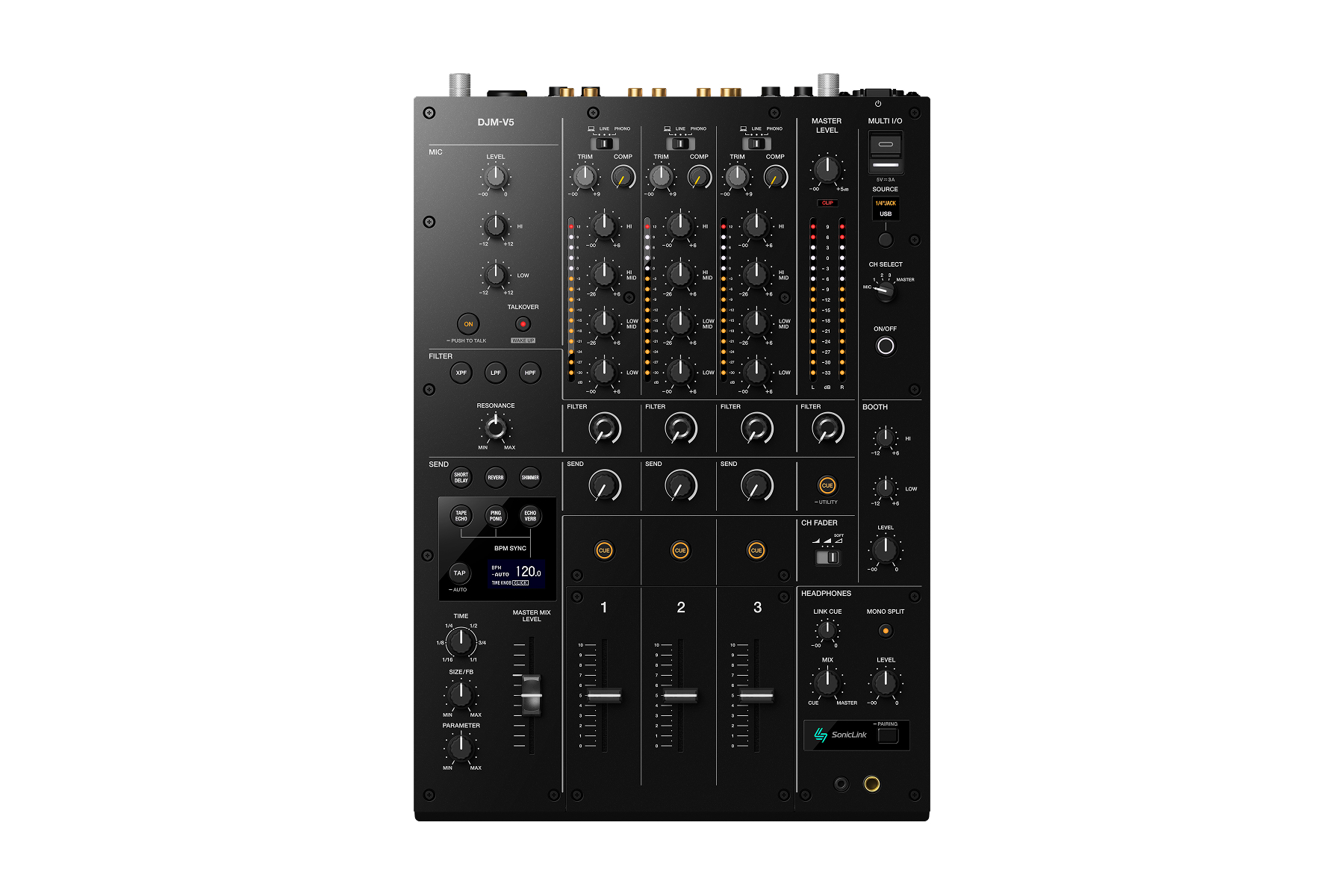 AlphaTheta DJM-V5 Black – Mixer DJ profesional cu 3 canale, ce oferă precizie și creativitate într-un format compact. Inspirat de DJM-V10, DJM-V5 livrează un sunet de înaltă rezoluție, fiind ideal pentru setup-uri cu spațiu limitat. Mixerul oferă control tactil prin faderele de canal de 60 mm, permitând tranziții fine.
