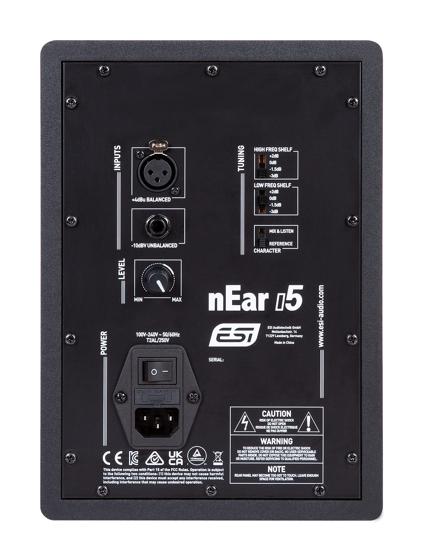 ESI nEar i5 este un monitor audio de referință cu woofer de 5" pentru utilizatorii entry-level care caută calitate profesională. nEar i5 este echipat cu DSP, amplificare de clasă D și oferă un răspuns ultra-plat oe frecvențe joase. Noul tweeter-ul cu con de mătase și woofer-ul special de 5" din fibre de hârtie durabile oferă o putere de neegalat pe intervalul de frecvențe joase-medii, oferind un răspuns nemaivăzut pentru această clasă. Comutatorul de selecție a caracterului oferă setări Mix & Listen sau sunet de referință precis.