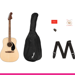 Pe lângă chitară, pachetul California Standard Redondo include o husă de concert, curea, pene, un set suplimentar de corzi și un abonament de 3 luni la Fender Play®, cea mai simplă metodă de a învăța să cânți la chitară – tot ce ai nevoie pentru a începe aventura muzicală într-un singur kit complet.