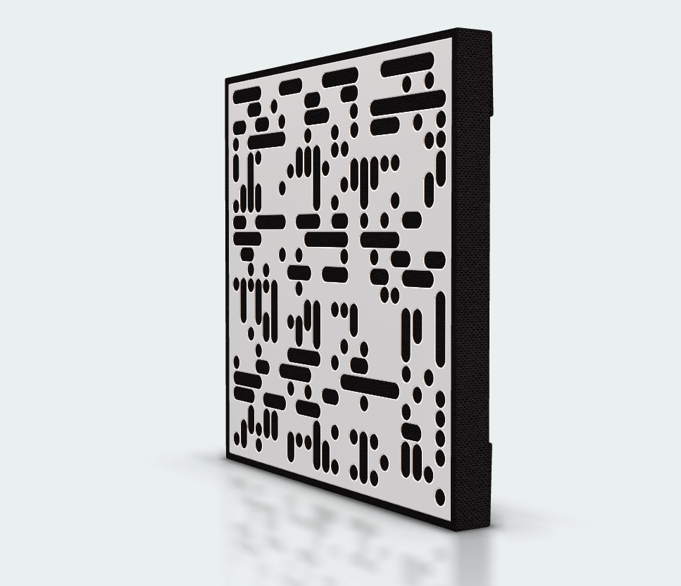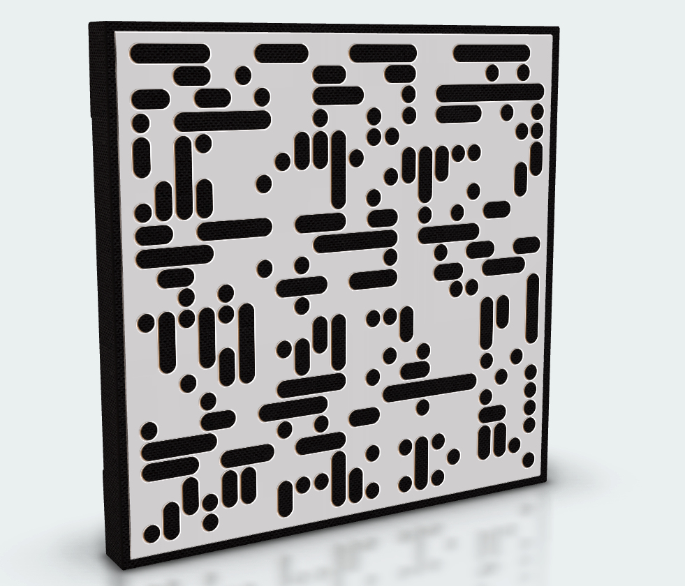 GIK Acoustics Amplitude Acoustic Panels Square Black Fabric 2D Alpha White - Panou acustic din seria Amplitude, ce oferă o soluție acustică versatilă ce îmbină absorbția broadband cu difuzia integrată, într-un profil subțire și elegant.
