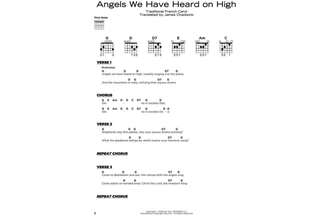 Cele 22 de colinde populare de Crăciun sunt aranjate în acorduri, versuri și tab-ul de bază: Away in a Manger · Deck the Hall · God Rest Ye Merry, Gentlemen · It Came upon the Midnight Clear · Jingle Bells · O Holy Night · Silent Night · The Twelve Days of Christmas · We Wish You a Merry Christmas · What Child Is This? Etc.