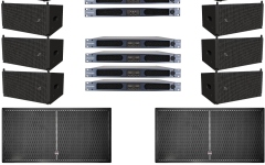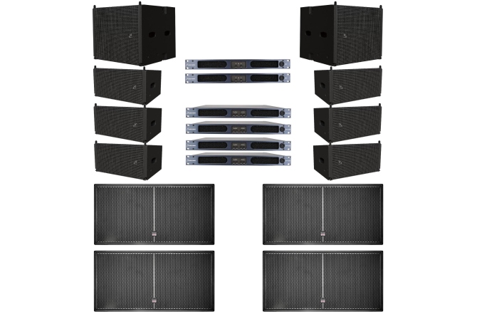 - Sistem line-array cu 6 subwooferi, 6 sateliți, 6 amplificatoare și 2 flybars