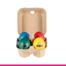 Nino Percussion Egg Shaker Box - 4 pcs NINOSET20 – Set de 4 Egg Shaker-e colorate, ce pot fi folosite individual sau ca un set pentru o colaborare distractivă, dimensiunea fiind perfectă pentru mâinile celor mici, permițându-le să creeze ritmuri interesante și incitante. Umplutura oferă un sunet cristalin care se îmbină bine cu alte instrumente - excelent pentru un cadru muzical de grup.