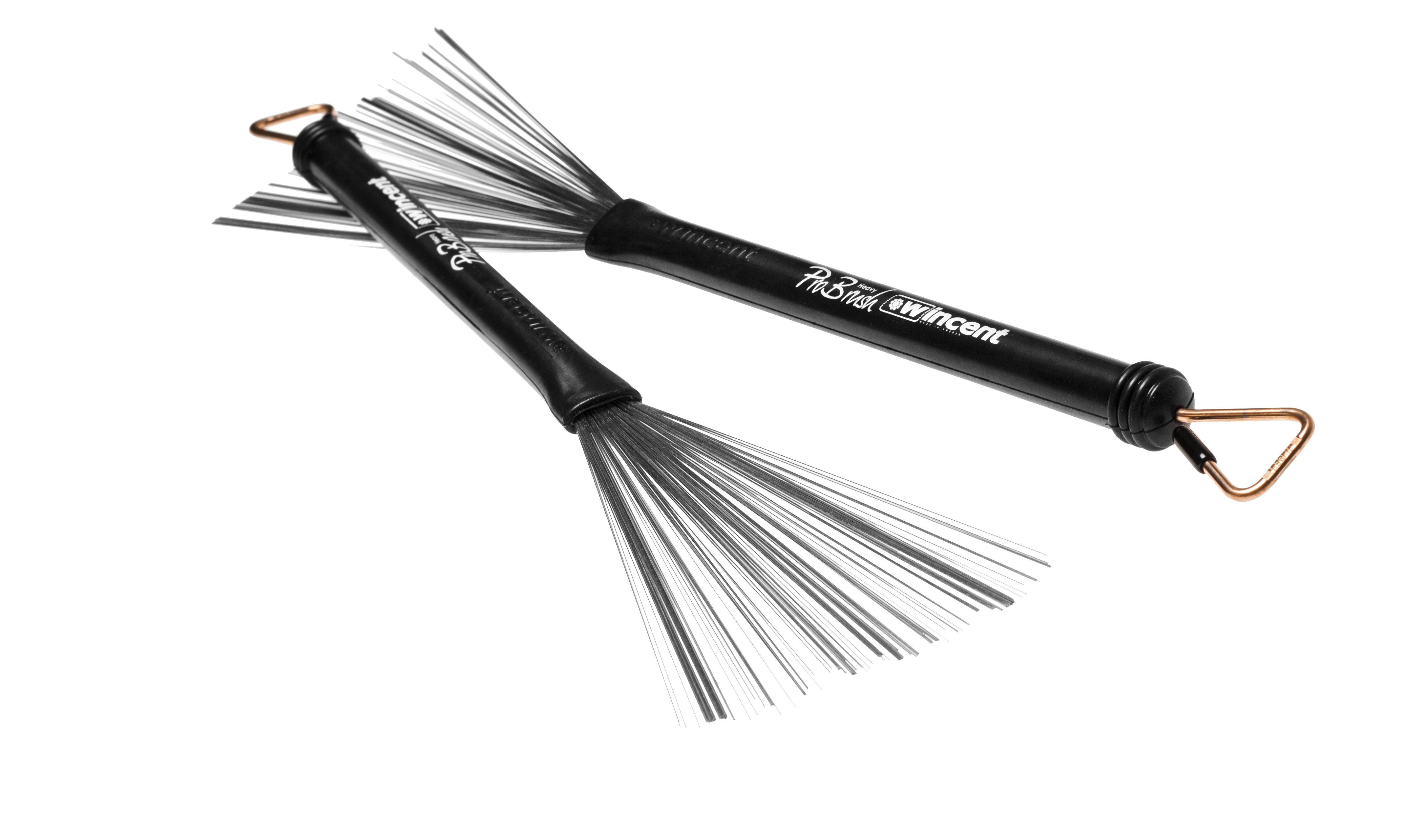 Wincent Brushes W40H - periuțe pentru tobe, confecționate din fire de oțel gros cu corp din cauciuc, retractabile (firele de oțel se retrag în mâner pentru protecție). Diametru de 14 mm, lungime 355 mm. Duritate heavy.