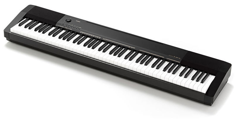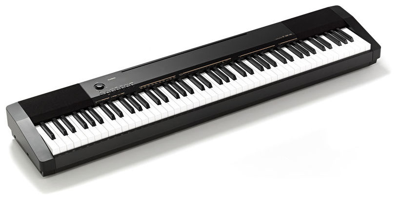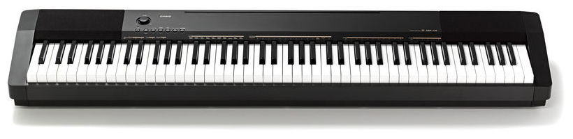 Casio CDP-130 BK - pian digital de scenă, compact și portabil, echipat cu claviatură cu 88 de clape Scaled Hammer, cu touch response și 3 nivele de sensibilitate, polifonie pe 48 note, 10 tonuri, beneficiază de funcție layer și transpose, efecte de tip reverb și chorus, metronom, conexiune USB to Host, și amplificare de 2x 8W.