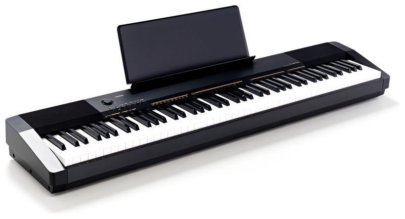 Pian digital de scenă, compact și portabil, cu claviatură cu 88 de clape Scaled Hammer, cu touch response și 3 nivele de sensibilitate, polifonie pe 48 note, 10 tonuri, funcție layer și transpose.