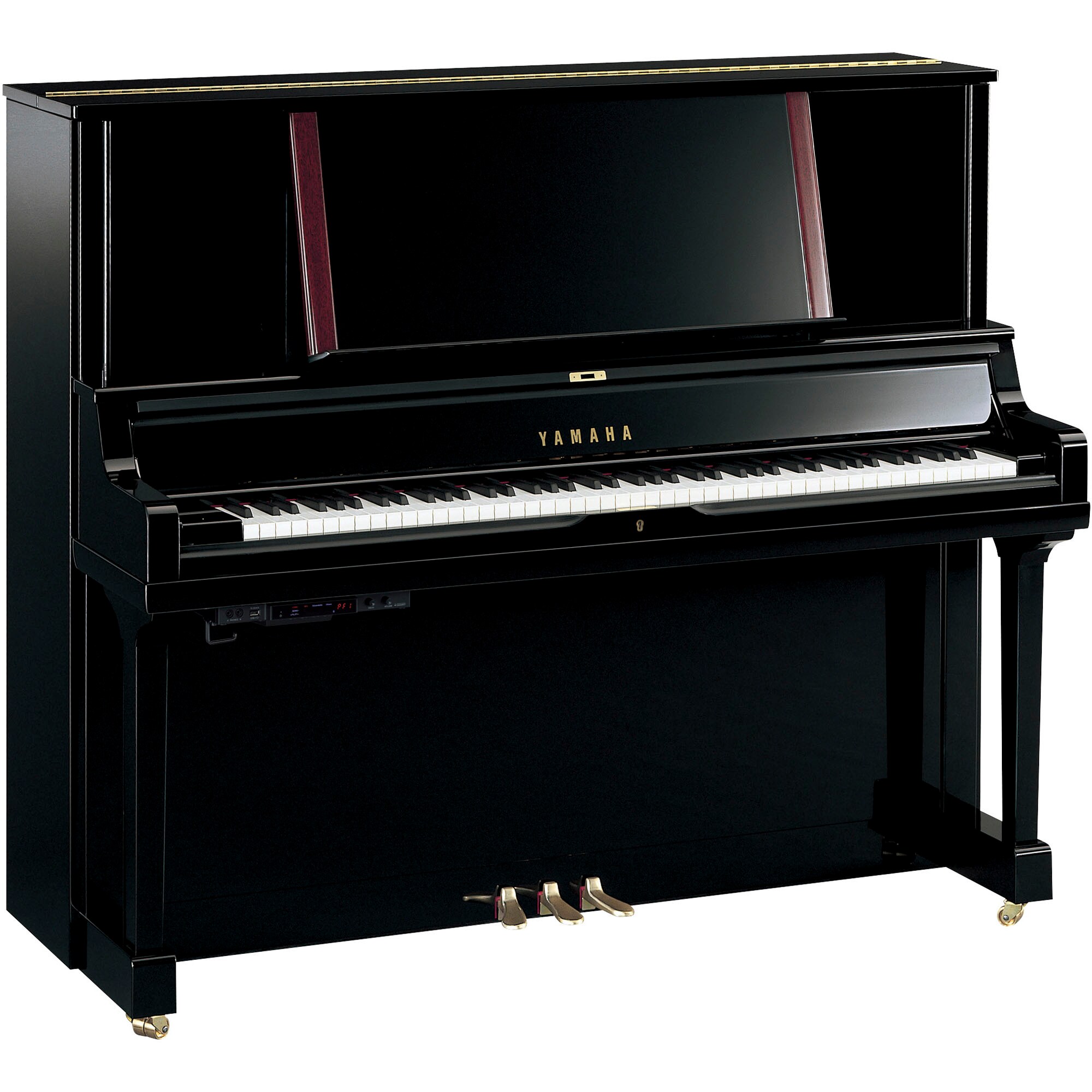 Yamaha YUS5 TA3 PE – Pianină acustică echipată cu tehnologia Yamaha TransAcoustic™, care permite controlul volumului și redarea prin căști fără a pierde senzația unui pian acustic real. Chiar și la volum redus, placa de rezonanță vibrează natural, oferind o experiență autentică de interpretare.