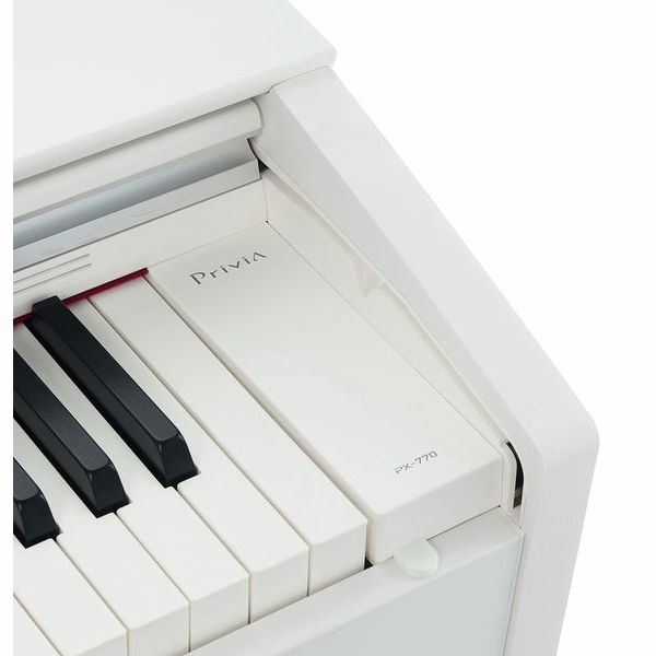 Casio PX-770 WE Privia - Pianină digitală cu 88 clape cu mecanism Scaled Hammer II, 19 tonuri, polifonie vocală 128 note, funcții Split, Layer, Duet, efecte Chorus, Reverb, Brilliance, 60 cântece demo, 3 pedale, culaore alb.