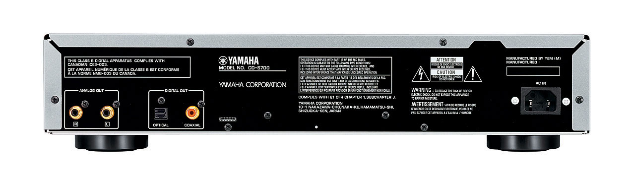 Yamaha CD-S700 - CD player stereo Hi-Fi cu tehnologie pure direct, mecanism pentru încărcare a CD-urilor de mare precizie și complet silențios, unitate de alimentare structurată independent, convertor diferențial D/A de înaltă performanță pentru conversie de înaltă precizie și zgomot slab, compatibilitate MP3/WMA, port USB frontal pentru iPod sau alte dispozitive, terminalele ieșirilor aurite, totul într-un design elegant și construcție cu cu panou frontal din aluminiu, picioare cu design special pentru extragreutate și amortizarea vibrațiilor. Poate fi controlat și prin telecomanda inclusă.