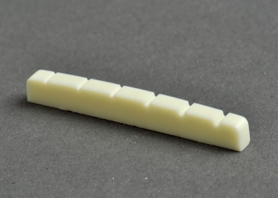 Göldo Duro Nut Gibs. 6-S - prăguș / nut pentru chitară cu grif cu lățime maxim 44 mm, cu prăguș aplicat, gen les paul. Necesită prelucrare, dimensiune 44 x 6 x 8 mm.