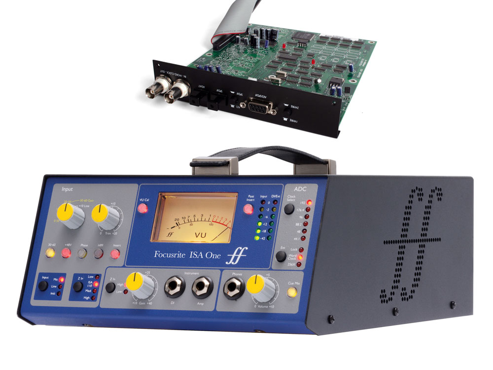 Focusrite ISA One + A/D Card, preamplificator din seria ISA, intr-o forma portabila. Cu topologia clasica de preamplificare din modelul ISA 110 de la Focusrite, ISA One include transformatoare Lundahl L1538 si retea Zobel, care era unul dintre principalele atuuri ale consolelor Focusrite Forte.