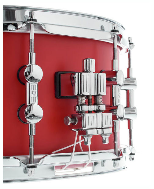 Sonor SQ1 Snare Hot Rod Red - premier/tobă mică, ce face parte din seria SQ1, cu corpul fabricat din mesteacăn european (european birch) laminat din 7 fâșii de 7mm în stil CLTF "Cross Laminated Tension Free", cu muchiile de contact cu fețele de bătaie și rezonanță, la un unghi de 45°. Este echipat cu șuruburi Tunesafe, întinzător de arcuri Dual Glide, și fețe de bătaie și rezonanță Remo USA. Fabricat în Germania. Finisaj Hot Rod Red (HRR) lăcuit satinat. Dimensiuni 14" x 6,5".