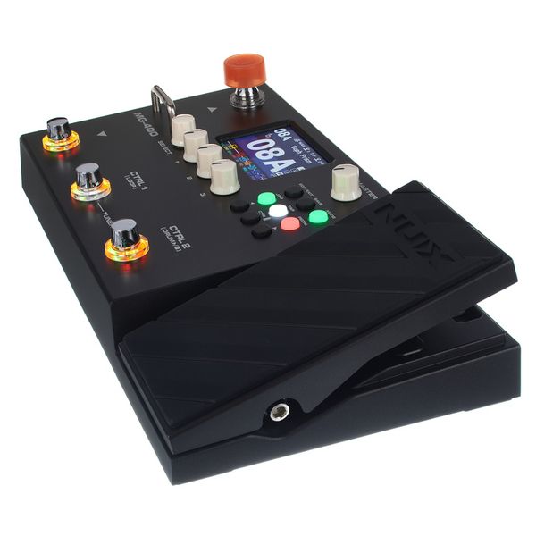 Nux MG-400 - Pedală multi-efect pentru chitară și bas electric cu motor DSP dual pe 32 de biți, simulare difuzoare cu 25 de amplificatoare de chitară, 25 de cabinete, 4 microfoane și încărcător IR.