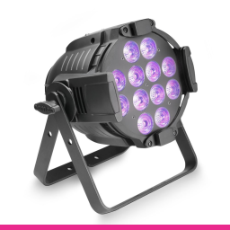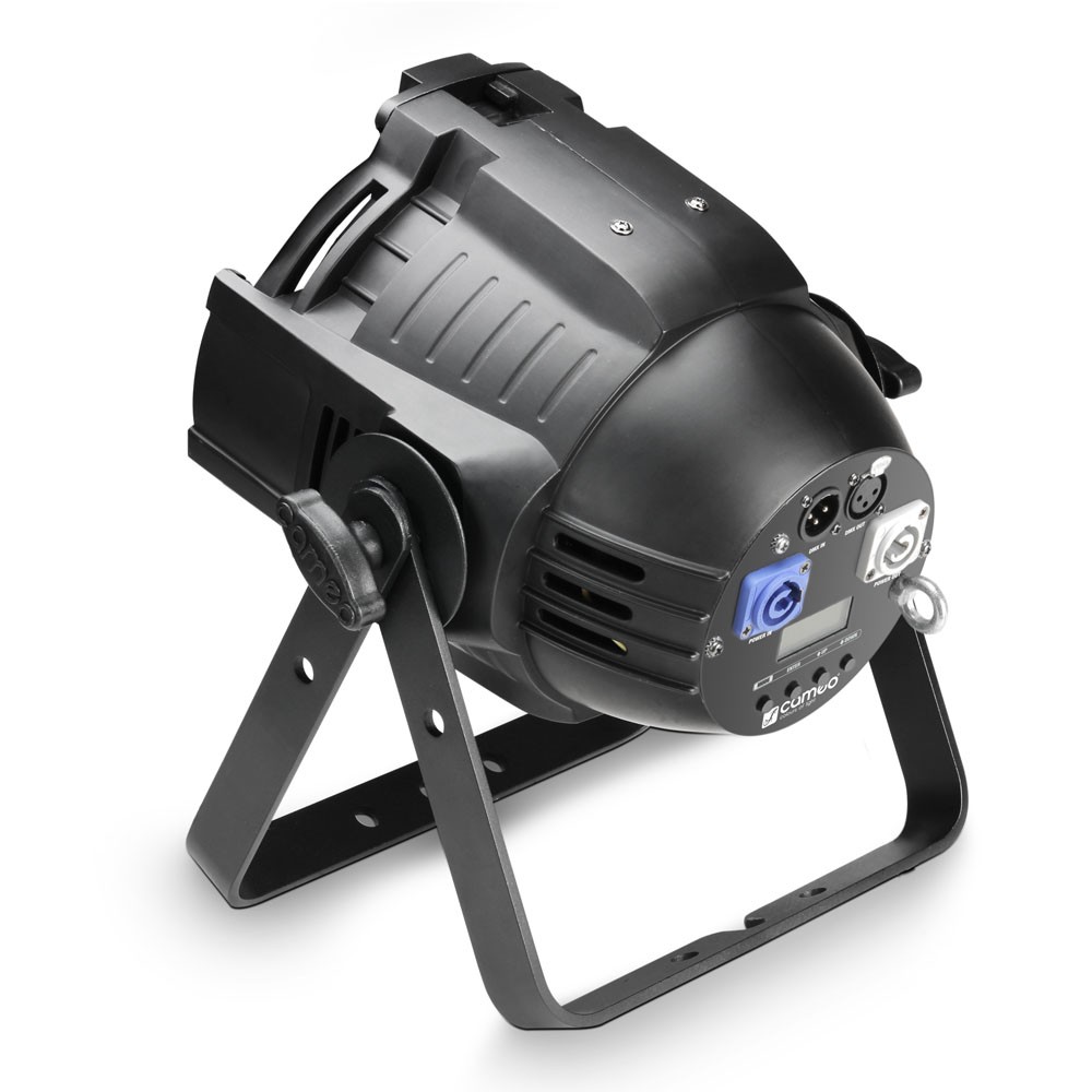 Cameo Studio PAR-64 RGBWA+UV 12W - proiector LED profesional de tip studio PAR 64, ce oferă un unghi de dispersie de 25°, într-o carcasă neagră rezistentă din metal turnat. Este echipat cu 12 LED-uri luminoase de 12 Watt 6-în-1. Sistemul RGBWA + UV permite un design de iluminat creativ cu culori pastelate subtile, precum și culori strălucitoare și saturate. Rata de refresh de 3000 Hz.