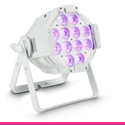 Cameo Studio PAR-64 RGBWA+UV 12W WH - proiector LED profesional de tip PAR 64, ce oferă un unghi de dispersie de 25°, într-o carcasă neagră rezistentă din metal turnat. Este echipat cu 12 LED-uri luminoase de 12 Watt 6-în-1. Sistemul RGBWA + UV permite un design de iluminat creativ cu culori pastelate subtile, precum și culori strălucitoare și saturate. Rata de refresh de 3000 Hz.
