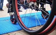 „Accesibilitatea” a devenit un subiect de îngrijorare crescândă atât pentru autoritățile publice, cât și pentru organizatorii de evenimente în ultimii ani. Cu cele mai obișnuite sisteme de protecție a cablurilor, de obicei trebuie făcut un compromis între accesul în scaun cu rotile și trafic. Dar nu este cazul noului DEFENDER® 2D M: fiecare secțiune din mijloc poate fi echipată cu o rampă pentru scaune rulante înclinată la 6°, care poate fi deplasată complet fără probleme. Înclinarea plană face ca utilizatorii de scaune cu rotile să se răstoarne cu ușurință peste protecții fără probleme. De asemenea, sunt atât de stabile încât chiar și stivuitoarele și camioanele pot trece peste ele.