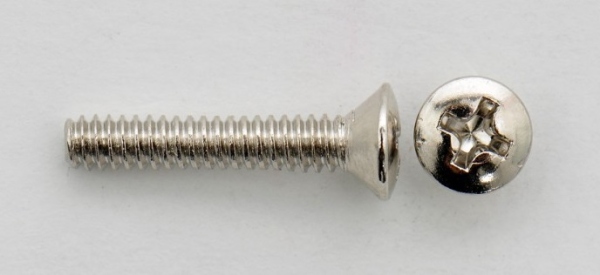 Göldo Strat Pickup Screw - șurub pentru doze single coil pentru chitarele de tip stratocaster, cu filet de tip american, cap bombat și finisaj nickelat.