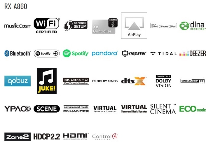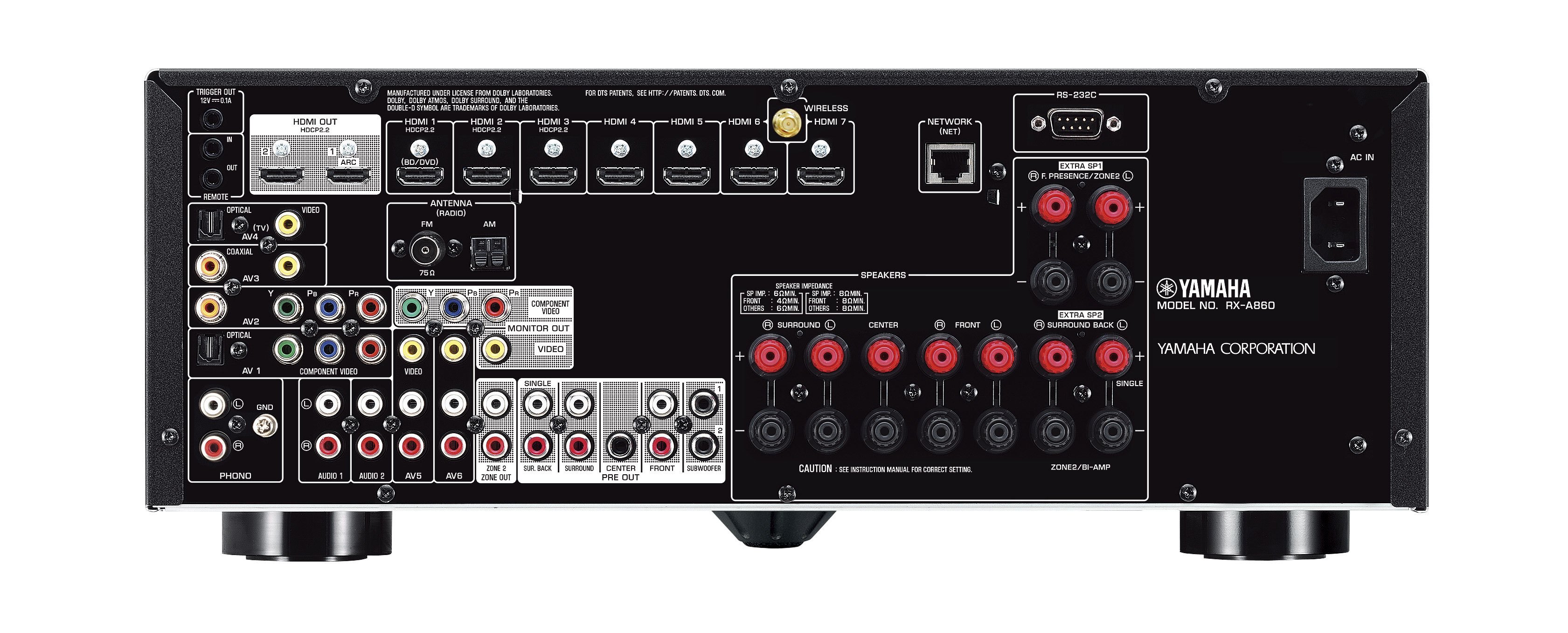 Yamaha RX-A860 Black - receiver AVENTAGE AV, cu 7.2 canale ce oferă o putere de invidiat, o performanță superba, și tehnologia Yamaha’s advance Anti-Resonance Technology. Caracteristicile sale performante includ suport pentru formate Dolby Atmos® și DTS:X™, dar și MusicCast și HDMI® cu suport pentru 4K/60p, 4:4:4, HDCP2.2, HDR și BT.2020, plus o intrare phono.