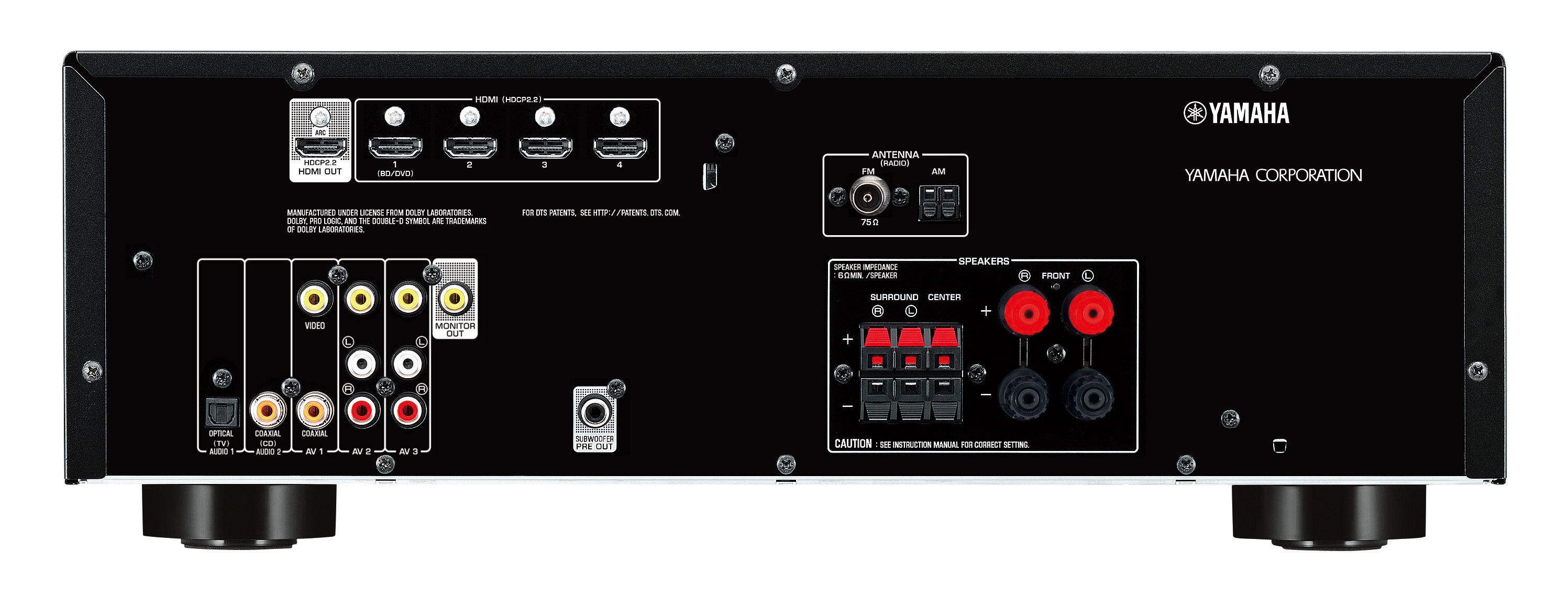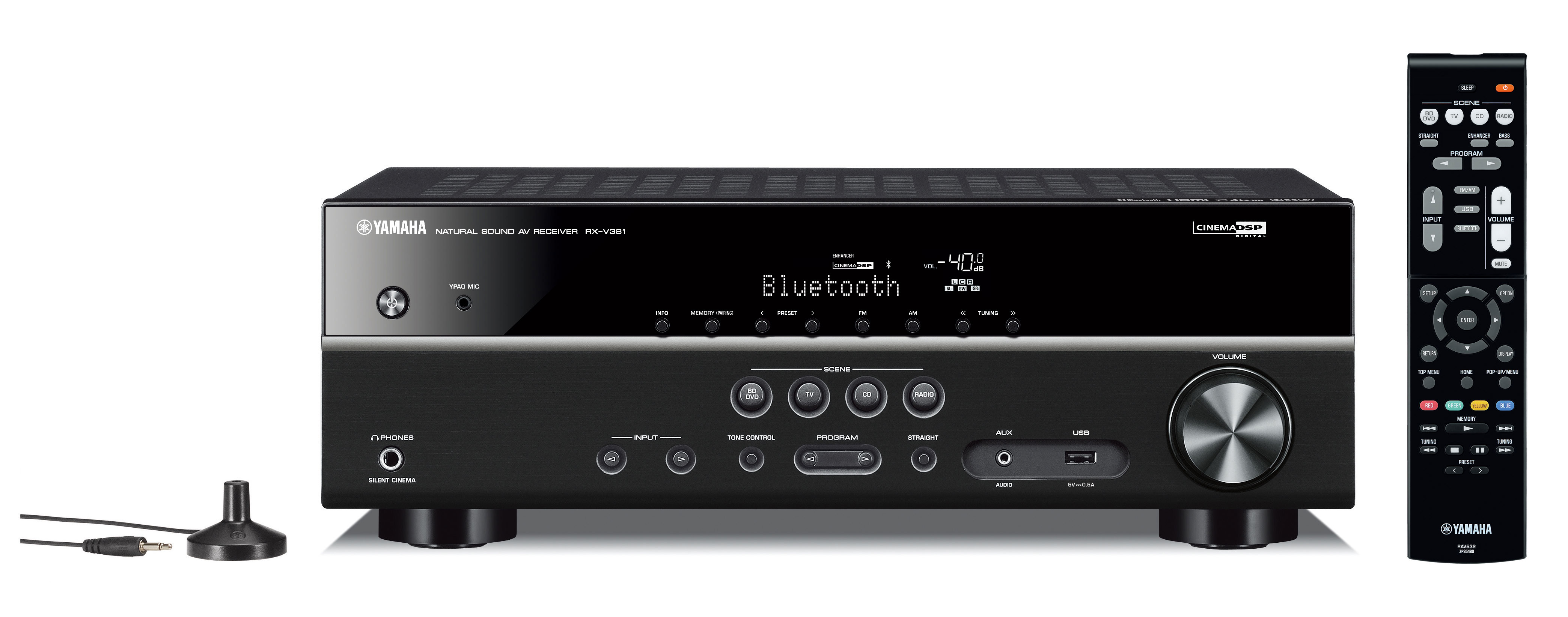 Yamaha RX-V381 - Receiver AV cu Bluetooth incorporat pentru muzică wireless, imagini impresionante în 4K Ultra HD cu HDCP 2.2, high dynamic range (HDR), compatibilitate BT.2020 și design de amplificare discretă pe 5.1 canale cu calibrare YPAO pentru cele mai înalte performanțe.