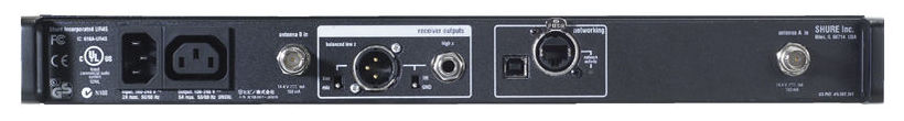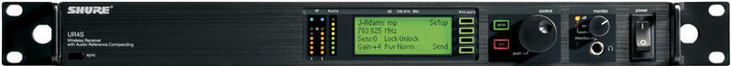 Shure UR4S+, receptor wireless UHF, profesional de nivel premium cu multe inovații tehnologice ca selectarea automată în rețea a frecvențelor, setarea automată pe o frecvență nou a transmițătorului. Porturile de distribuție RF permit ca o singură pereche de antene sa deserveasca 10 receptoare.