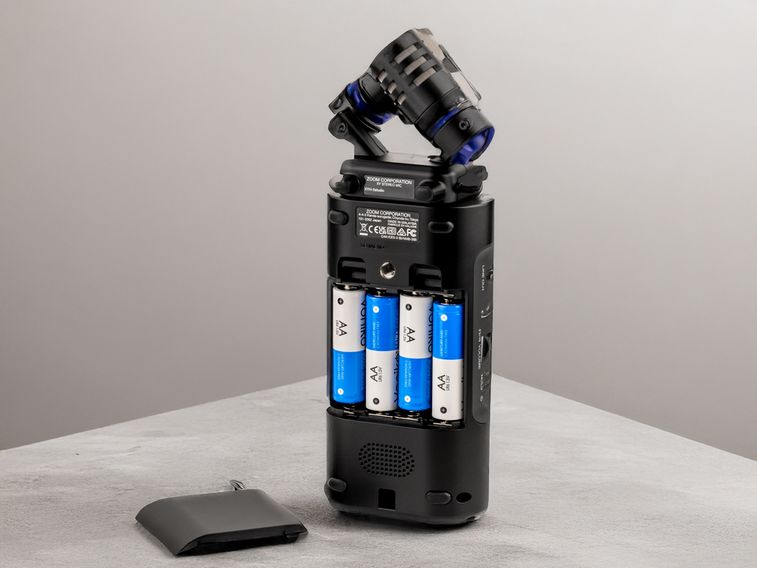 - 2 baterii AA (neincluse), sau prin USB-C (cablu neinclus) sau adaptor AC ZOOM AD-17 (DC 5V / 1A) (neinclus)
