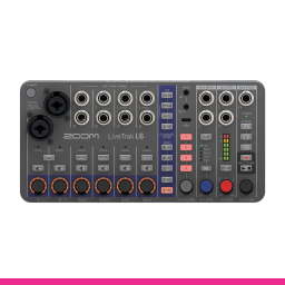 Zoom LiveTrak L6 - Mixer digital portabil cu recorder multitrack și interfață audio USB, ideal pentru muzicieni, producători, podcast-uri și streaming live. Acesta oferă până la 10 piste de sunet de calitate de studio, efecte încorporate și control complet al mixului într-un design compact, ușor de folosit.