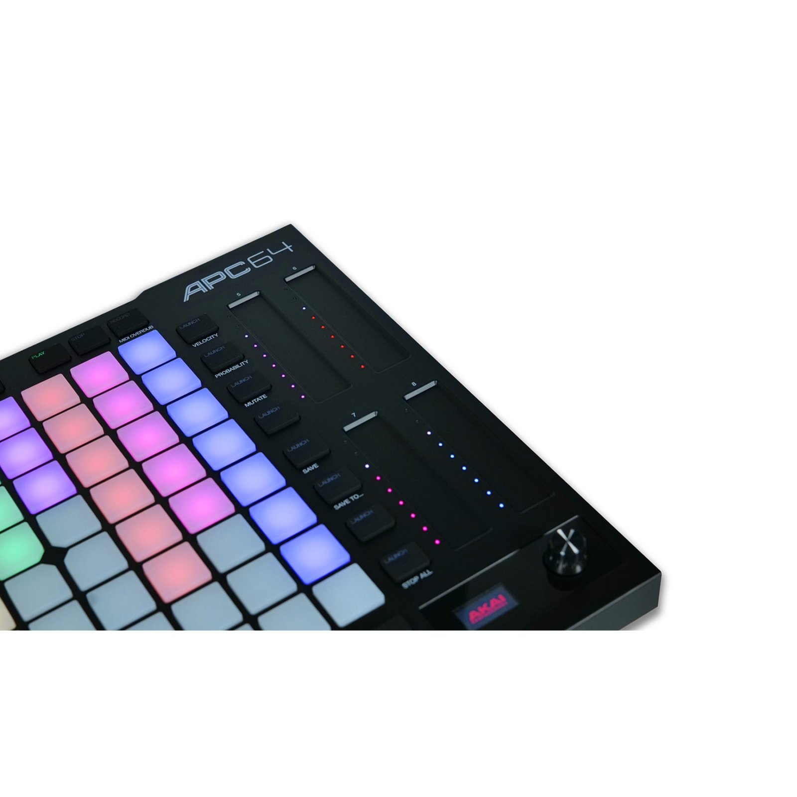 Akai APC 64 - AKAI APC64 aduce controlul avansat pentru Ableton Live cu 64 de pad-uri RGB sensibile la viteză și poly aftertouch, 8 benzi tactile, un secvențiator de piste și multe altele. Ideal pentru producție muzicală și spectacole live, acest dispozitiv oferă un control detaliat asupra Ableton Live.