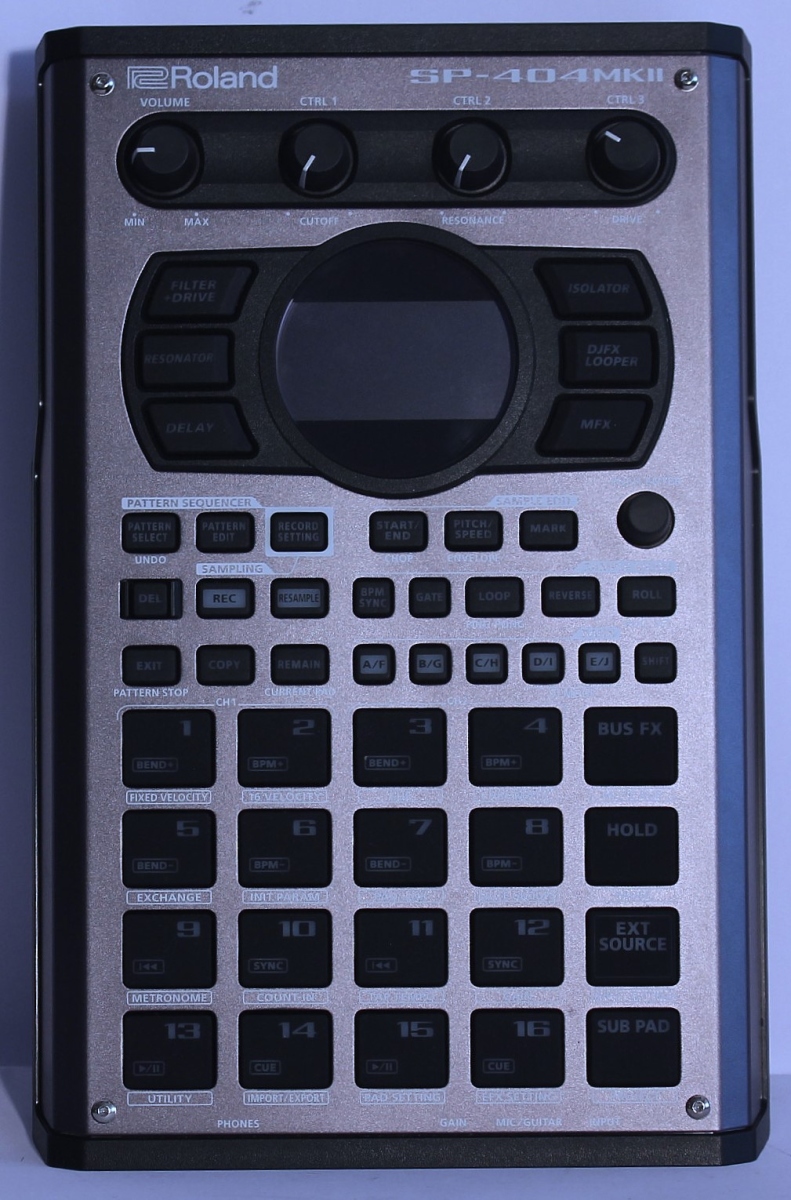 Roland SP-404 MKII - Sampler profesional echipat cu un ecran OLED vivid, pad-uri noi expresive, efecte extinse, sequencer fluid, sampling și o bibliotecă masivă de sunete autentice. Are un design compact, ultra-ușor (1,1 kg) cu opțiuni de alimentare versatile: USB-C, baterie mobilă (prin port USB-C), șase baterii AA sau adaptor de curent alternativ și include software-ul de editare SP-404MKII pentru Mac și Windows care oferă acces direct la samplare, editare detaliată a formelor de undă, gestionarea sampler-ului, alocarea pad-urilor și importul de fișiere MIDI și proiecte SP-404SX și SP-404A.