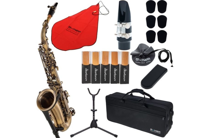 Thomann Antique Alto Sax Alto Sax Set – Set Saxofon Alto, ce cuprinde toate accesoriile de care vei avea nevoie, atât pentru performanțe cu instrumentul, cât si pentru întreținerea acestuia: