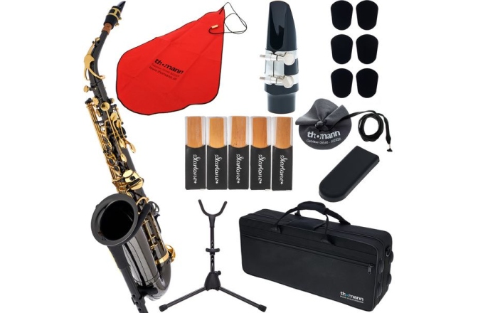 Thomann TAS-180 Black Alto Sax Set II – Set Saxofon Alto, ce cuprinde toate accesoriile de care vei avea nevoie, atât pentru performanțe cu instrumentul, cât si pentru întreținerea acestuia: