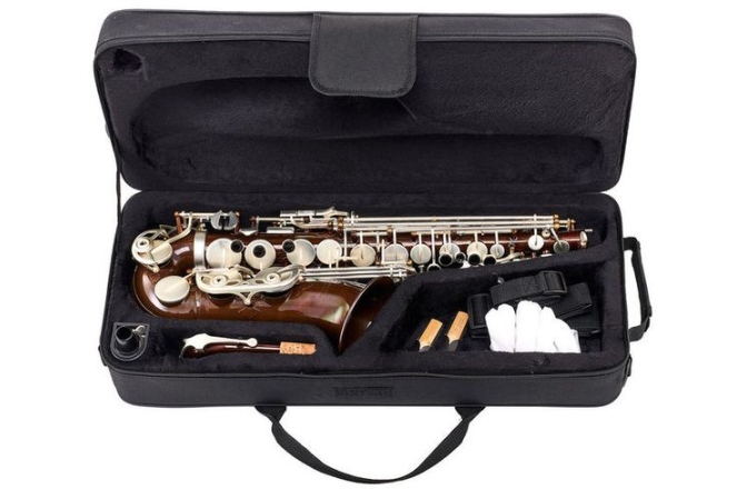 Thomann TAS-180 Vintage Alto Saxophone - Saxofon Alto cu design vintage, corp în formă de S, dotat cu un sistem de chei din alamă de înaltă calitate. Instrumentul este ușor de întreținut, având un clopot detașabil și taste placate cu argint mat. Acesta vine împreună cu o husă ușoară cu curele tip rucsac pentru transport facil.
