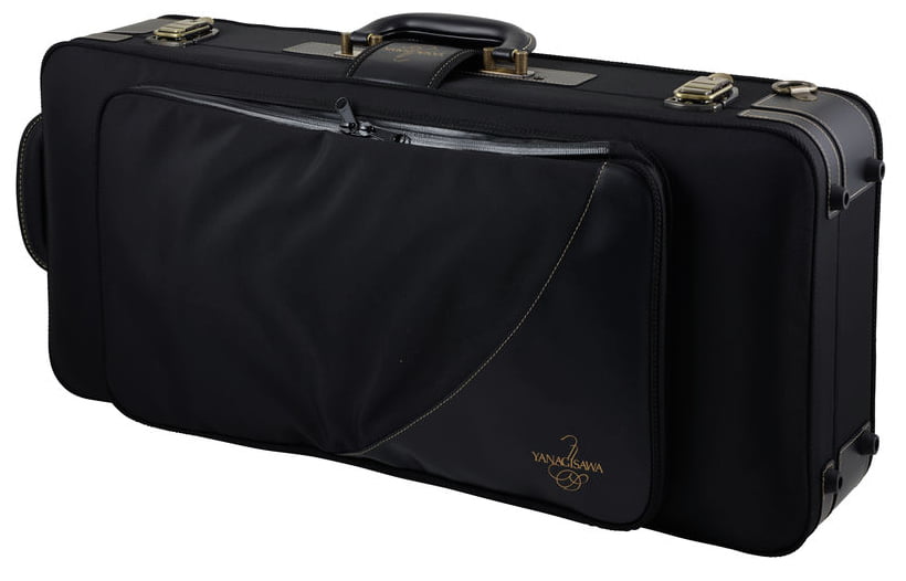 Saxofon alto acordat în Mib (Eb), model profesional, cu manetă C#/Bb, clapetă pentru F#, gravură manuală pe pâlnie, lăcuit, include etui cu curele tip rucsac și compartiment exterior pentru accesorii/partituri, muștiuc, capac și brățară.