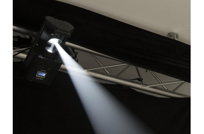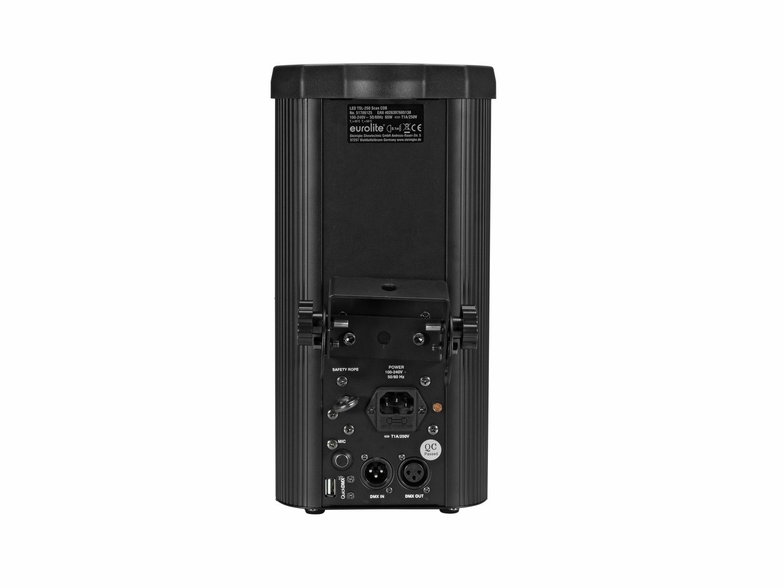 Eurolite LED TSL-250 Scan COB - Acest scanner portabil dispune de un LED alb puternic de 30 W, un gobo rotativ și o roată de culori. Designul său compact permite poziționarea pan și tilt. Cu o roată de culori care include 7 filtre dichroice și opțiunea "deschis", precum și un efect de curcubeu cu viteză reglabilă. Gobo wheel dispune de 7 gobos cu diametrul exterior de 14 mm și diametrul imaginii de 10 mm, toate schimbabile cu ușurință datorită sistemului de inserție fără unelte. Poate fi controlat în moduri variate, inclusiv stand-alone, DMX (cu 10 canale), QuickDMX prin USB (opțional), funcția master/slave și controlul muzical prin intermediul microfonului. Are intrări și ieșiri DMX de tip XLR cu 3 pini, unghiul de iluminare este de 9°, iar răcirea se realizează cu un ventilator.