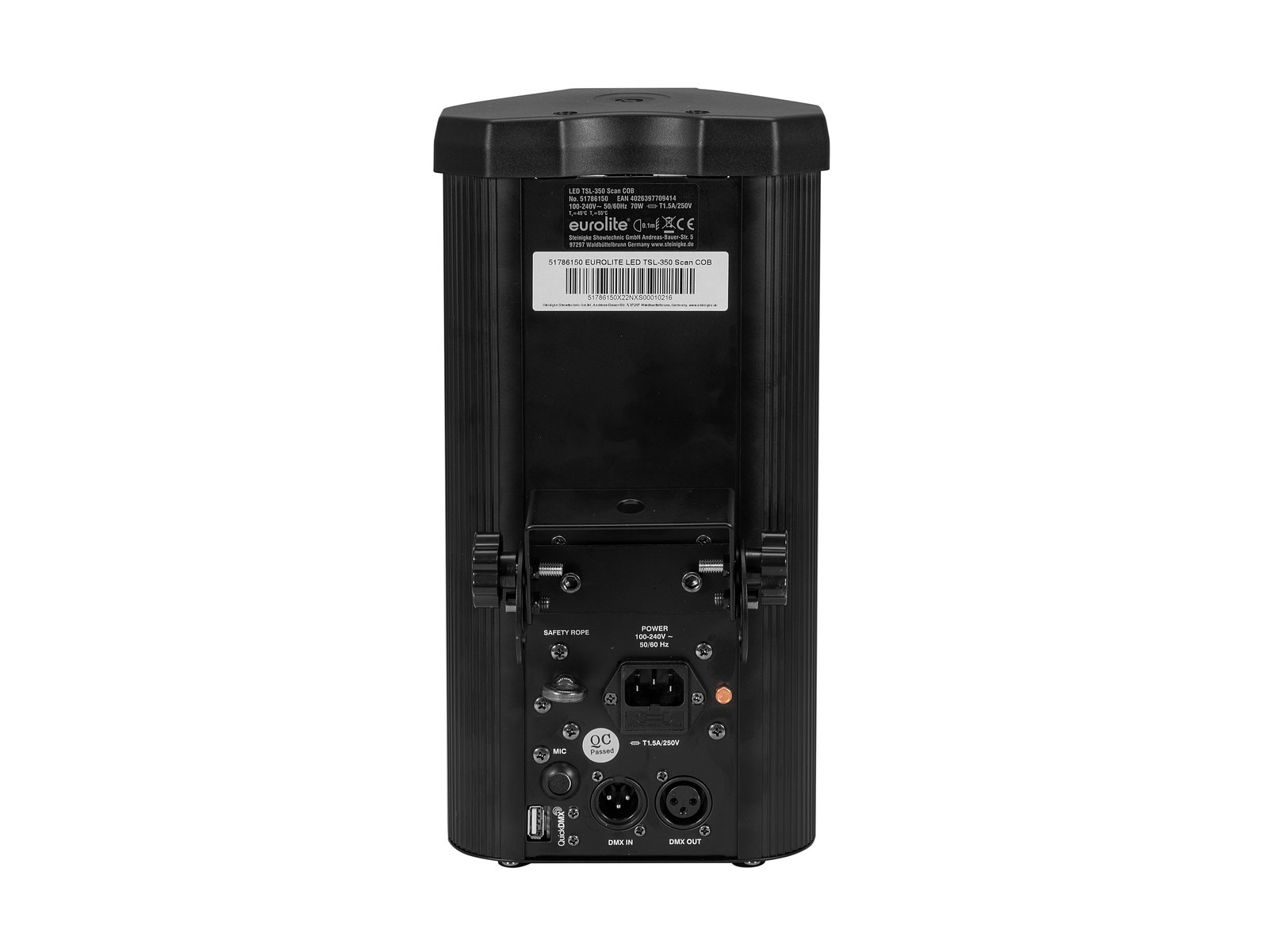 Eurolite LED TSL-350 Scan COB - Acest scanner compact dispune de un LED COB (chip pe placă) puternic de 60W în culoarea alb rece (CW) și oferă o gamă de efecte de iluminare, fiind potrivit pentru diverse aplicații.