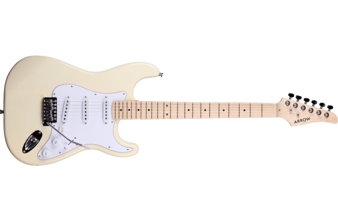 Arrow Tonecaster ST 111 Creamy Maple/White – Chitară electrică în stil Stratocaster, de culoare crem. Corpul este din plop, în timp ce gâtul din arțar canadian este echipat cu o tastieră din arțar, iar cele 3 doze single-coil sunt ideale pentru versatilitate tonală. Chitara are un cutaway asimetric care face să fie ușor și confortabil să ajungi chiar și la cele mai înalte freturi.