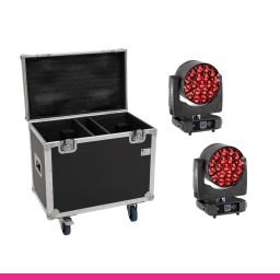 EUROLITE LED TMH-H380 Fascicul / Wash / Efect de floare + Flightcase with wheels - Set de 2 moving-head-uri + flightcase, un sistem complet de lumini scenicice care combină efectele beam, wash și flower într-un singur echipament versatil. Fiecare unitate este echipată cu 19 LED-uri RGBL de 20W cu control individual al pixelilor, zoom motorizat și rotație a obiectivului pentru efecte dinamice spectaculoase.