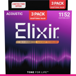 Elixir 3Pack Nanoweb Acoustic 80/20 11-52 16564
