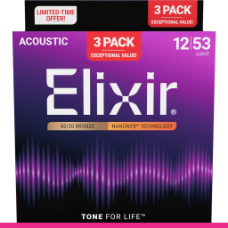 Elixir 3Pack Nanoweb Acoustic 80/20 12-53 16565