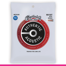Martin Guitars MA-150T Authentic Acoustic Medium - Corzi profesionale pentru chitară acustică fabricate din bronze 80 / 20 cu tensiune medie și o tehnologie inovativă care previne coroziunea și păstrează tonul natural.