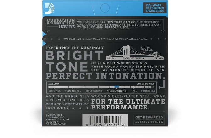 - La fel ca toate corzile de chitară electrică D'Addario, XL Nickel sunt fabricate cu Hex-Core, asigurând intonație perfectă, senzație consistentă și durabilitate fiabilă.
