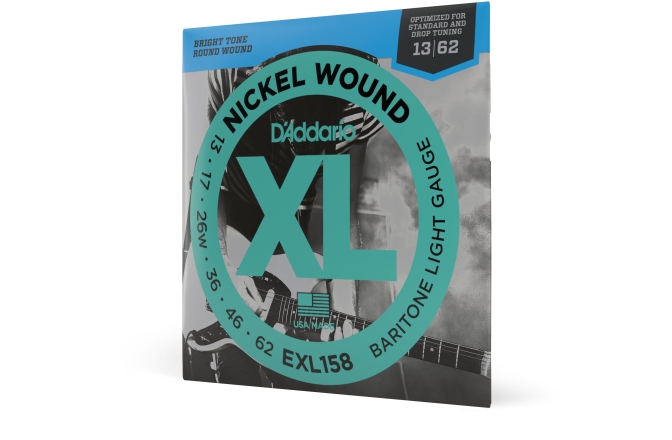 D'addario EXL158 Baritone Light 13-62 - set de corzi pentru chitara electrică bariton, cu matisaj de nickel, cu coarda sol matisată, aceste corzi oferă o dinamică și un atac bine definit. Corzile au o tensiune light.