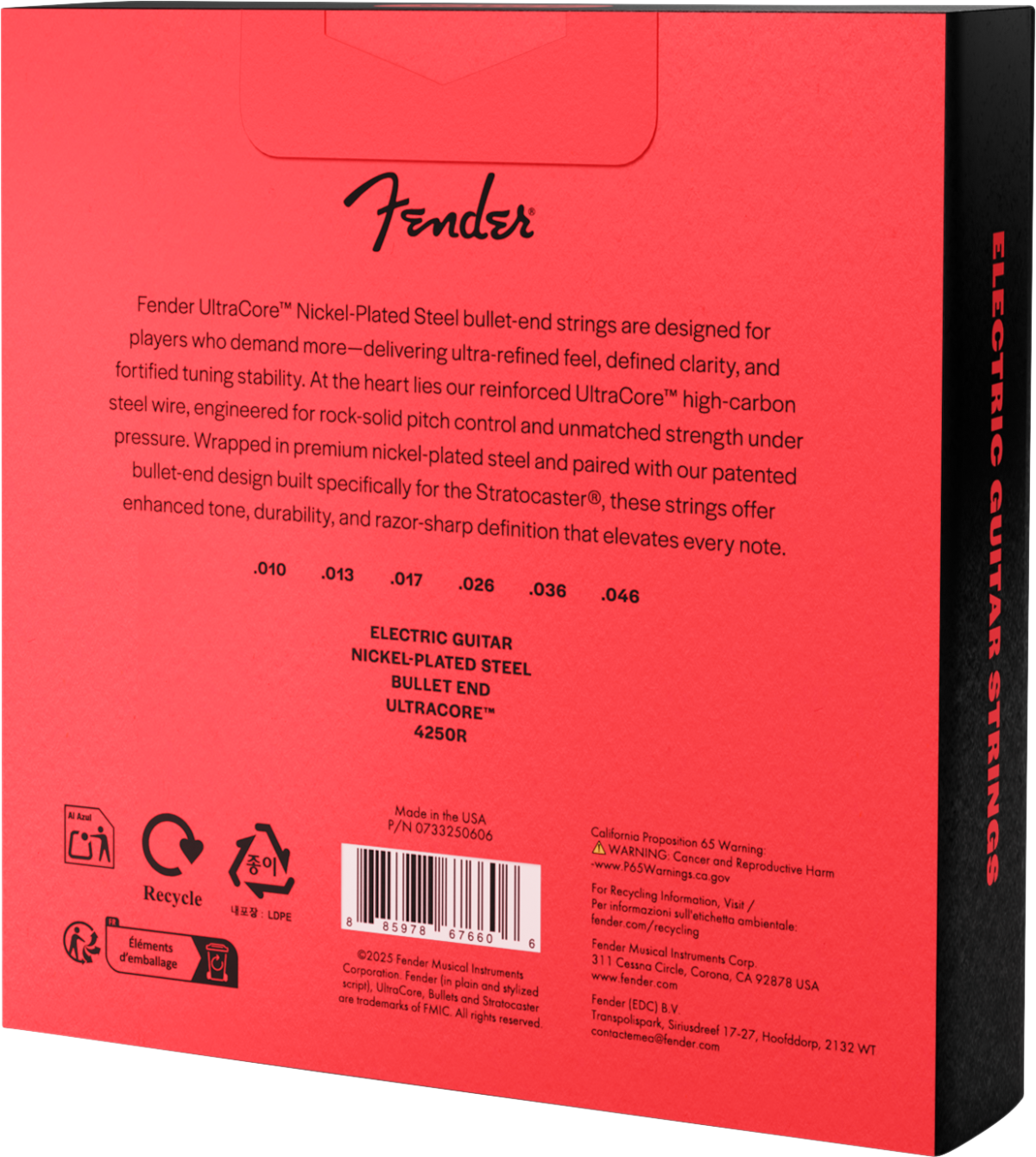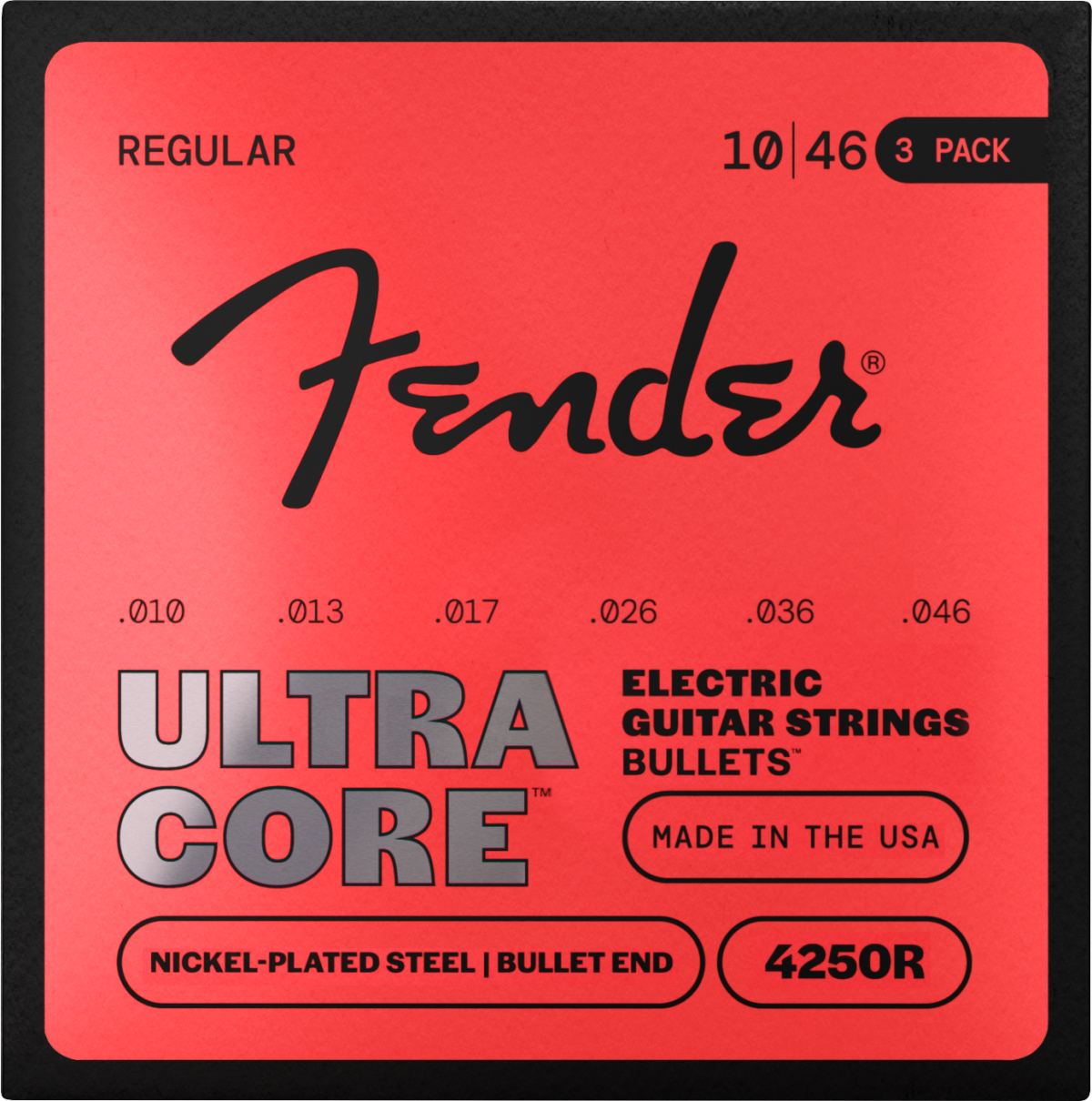 Fender 4250 Ultracore™ Guitar Strings Nickel Plated Steel Bullet End 4250R Gauges .010-.046 (6) 3-Pack