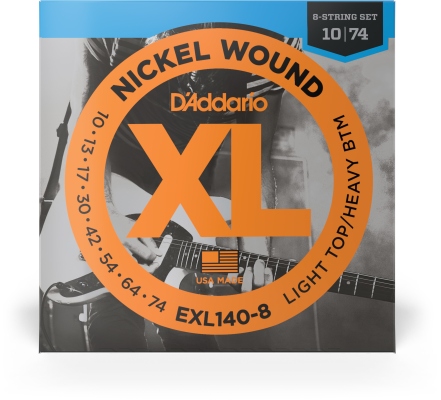 D'addario NYXL1074 8 Strings - set de corzi pentru chitara electrică cu 8 corzi, cu miez din aliaj de oțel carbon, cu matisaj rotund, ce au o rezistență crescută cu 30% la coroziune, și au un output crescut, și o performanță crescută de la 2kHz la 5 kHz, pentru o dinamică și un atac mai bun.