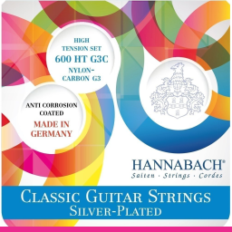 Noua serie 600 combină calitatea obișnuită Hannabach la un preț rezonabil. Combinația de nylon de înaltă precizie pentru E1 și H/B2, precum și Carbon pentru coarda G3 oferă cea mai bună tranziție tonală între corzile înalte și cele de bas placate cu argint și protejate împotriva pătării. Fără nichel conform DIN DIN EN 1811 , respectă regulamentul REACH VO (EG) Nr. 1907/2006. Reglabilitate excelentă, sunet clar, transparent. Geantă Zip-Lock, resigilabilă, ambalată etanș și rezistentă la lumină (VE20). Fără serviciu de coarde individuale!. Fabricat manual în Germania. 600HTG3C înaltă tensiune. E-1: 0.72 mm/.0283”, 7.5 kg/16.54 lbs;H/B-2: 0.83 mm/.033”, 6,2 kg/13.67 lbs;G-3 Carbon 0.86 mm/.034”, 7.0 kg/15.43lbs;D-4: 0.75 mm/.030”, 7.8 kg/ 17.20 lbs;A-5: 0.93 mm/.037”, 7.6 kg/ 16.76 lbs;E-6: 1.13 mm/.045“, 7.8 kg/17.20 lbs.