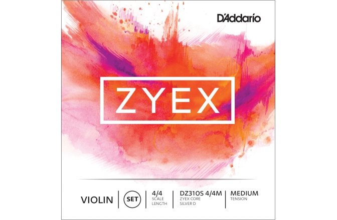 D'addario Zyex DZ310S 4/4M, set de coarde de vioară, scala 4/4, tensiune medie. Corzile din seria Zyex produc un sunet foarte cald și bogat, miezul este fabricat dintr-un material sintetic ceea ce conferă stabilitate față de ambiante climaterice schimbătoare și sunt o alegere ideală pentru instrumente cu tonalitate străucitoare.