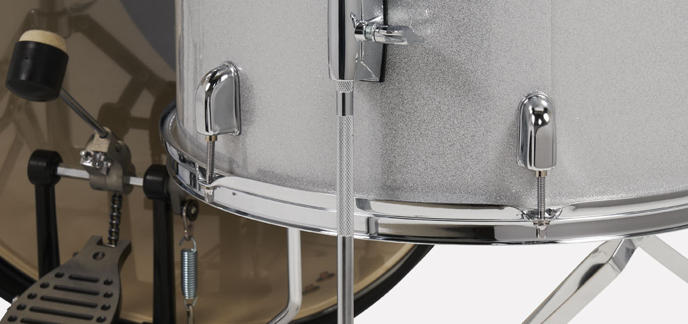 DW PDP Centerstage PDCE2015KTDW Diamond White Sparkle - Experimentați căldura puternică și netedă a acestor shell-uri din plop. Bucurați-vă de aspectul atrăgător și de durabilitatea uimitoare a finisajelor învelite cu strălucire. Setul include un snare, tobă mare, cazan și două tom-uri cu suport, plus un scaun, hardware cu două brațe, cinele din alamă și bețe. Tijele de tensiune True-Pitch, picioare telescopice și o varietate de alte caracteristici rezervate în mod normal tobelor de ultimă generație fac seturile Center Stage perfecte pentru orice interpret.