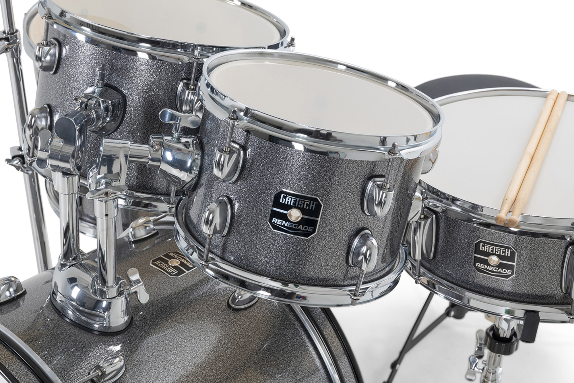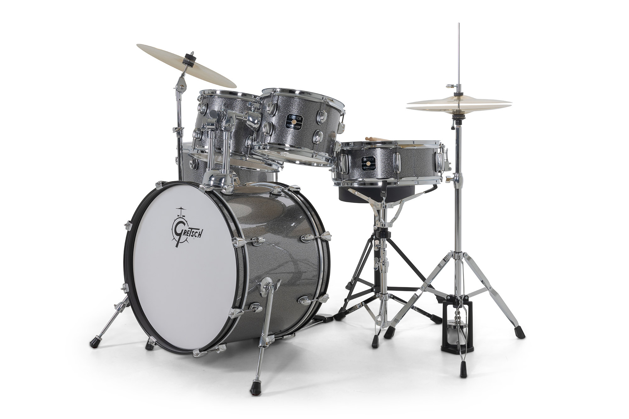 Renegade Drumset 10/12/14/20/14SD Grey Sparkle - Set complet de tobe acustice într-o configurația versatilă (tobă mare de 20", tom-uri de 10" și 12", floor tom de 14" și snare de 14"), ce oferă un sunet echilibrat și rezonant, potrivit pentru o gamă largă de stiluri muzicale.